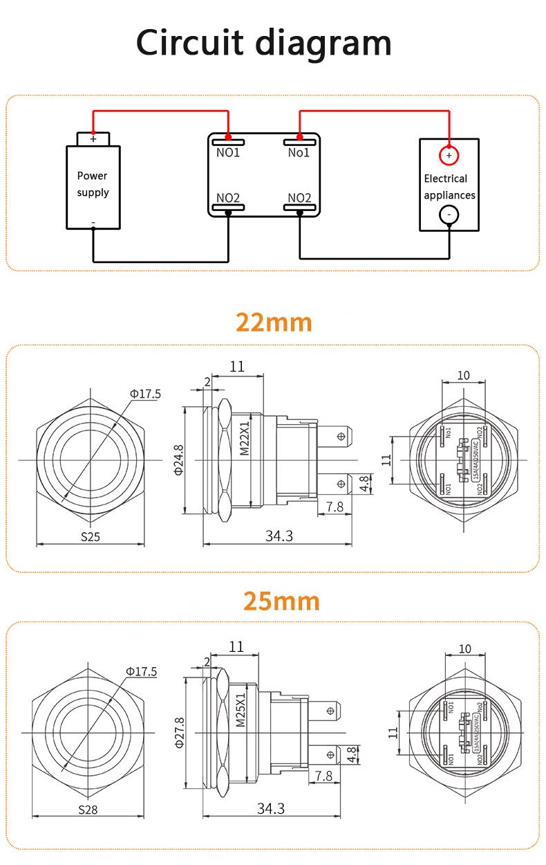 22C/25C Series Metal Pushbutton Switches