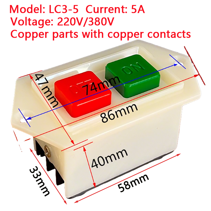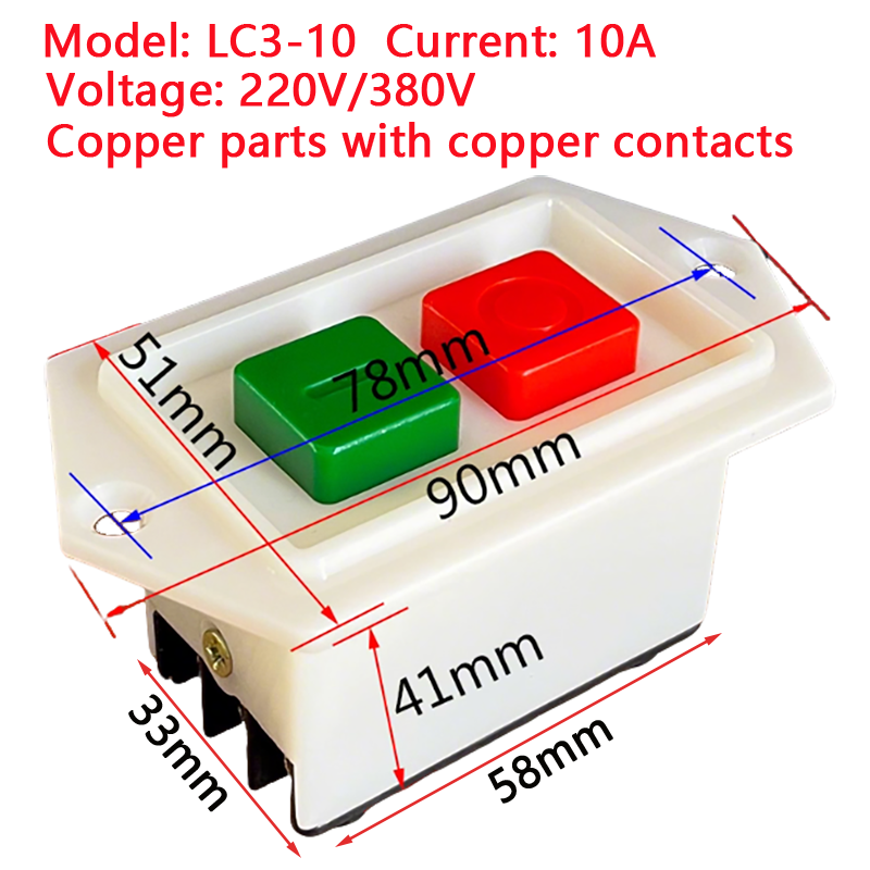 The LC3-10 button utilizes a bridge-type contact structure with silver alloy contacts, ensuring reliable electrical connections. It is capable of directly controlling small three-phase motors and is commonly used in industrial equipment in sectors such as food processing, packaging, and textiles.