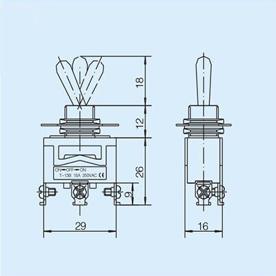 Single-pole double-throw intermediate stop type Toggle switch: