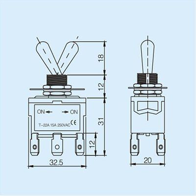 Double pole double throw type Toggle switch: